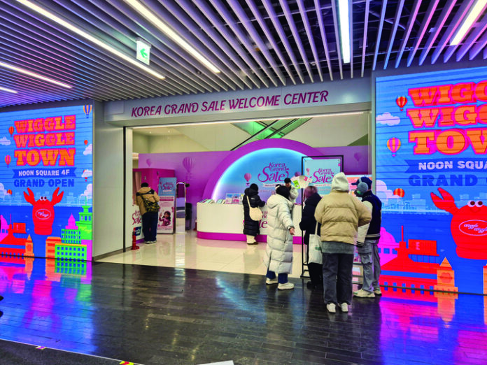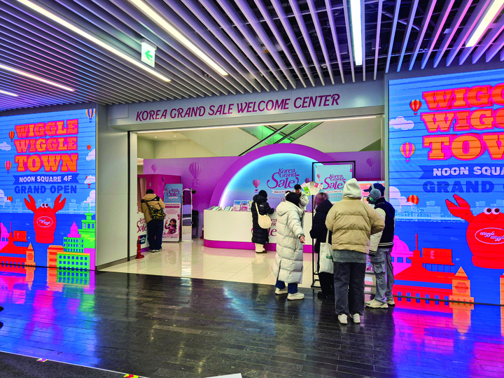1월 12일 오전 영하 5도의 추운 날씨에도 서울 명동 눈스퀘어 1층에 있는 ‘코리아그랜드세일 웰컴센터’는 한국을 찾은 외국인 관광객들로 북적였다. 웰컴센터는 한국 관광 활성화를 위해 열린 2026 코리아그랜드세일 기간 동안 외국인 관광객에게 여행 정보와 할인 혜택, 통역 서비스, 다양한 문화 체험 프로그램 등을 제공한다. 명동을 찾은 외국인 관광객에게는 지나칠 수 없는 베이스캠프 같은 곳이다.